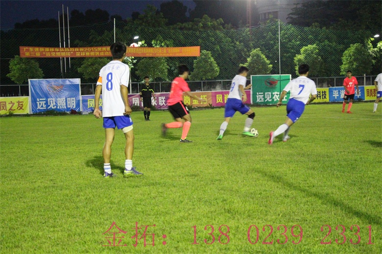 2015年8月25日東莞鳳崗第三屆“遠見杯”四強爭奪戰(zhàn),(金拓機械VS鳳崗泰冠華)在鳳崗油甘埔體育廣場舉行。經(jīng)過70分鐘的酣戰(zhàn),最終金拓機械以1:0取得比賽勝利,成功殺入四強。